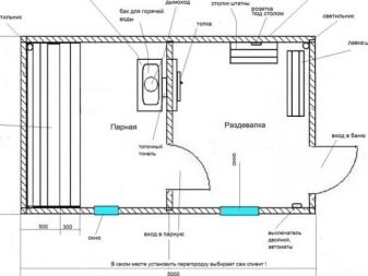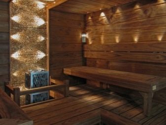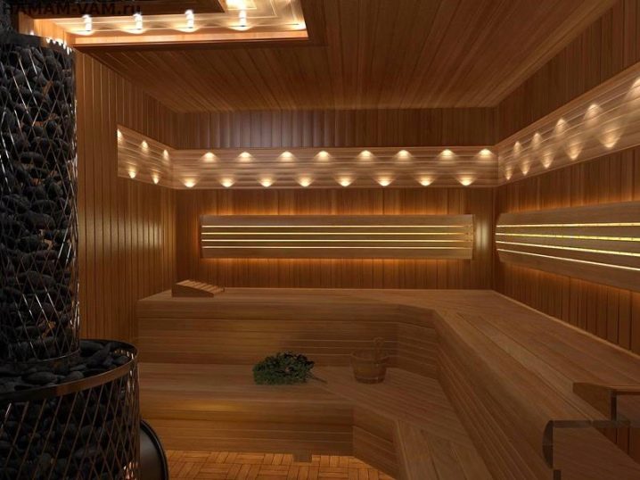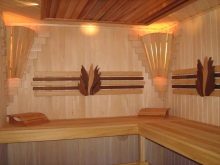 - Трябва да се обмисли достатъчно осветление на места с повишена употреба. В случай на парна баня, това е вход, рафтове, на които седят почиващите, камъни или печка, където се извършва отопление.