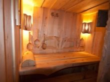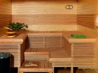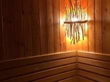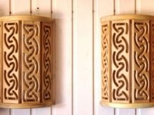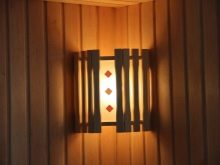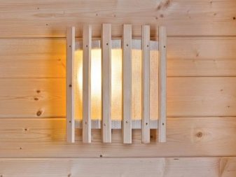 Повечето сауни, разположени на лични парцели, обаче, подобно на сауните в селските къщи, са подрязани с дърво – най -често дъска, изработена от различни видове дърво. В този случай бих искал да допълня интериора с естествени елементи, за да запазя целостта на картината. Следователно декорирането на лампи с дървени решетки има не само практическа, но и естетическа стойност..