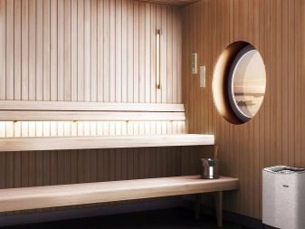 Във финландските сауни трябва да се наблегне на високите температури. Руската баня приема висока влажност. Следователно материалите на корпуса и лампите за двата типа ще бъдат различни..