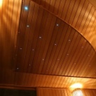 Рафтовата зона е успешно подчертана от ъгловото осветление. Дървените решетки в съответствие с основното покритие не отвличат вниманието и правят атмосферата пълна и завършена.