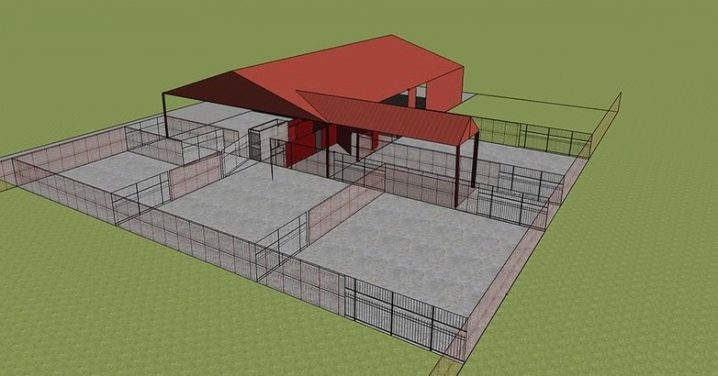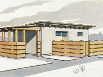 Такива заграждения се състоят от отворена основа и навеси. Външната страна на сенниците изглежда като плътна стена, а отворената основа не е защитена от стени. Ограден е с ограда с височина 2-2,5 метра.
