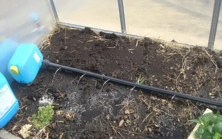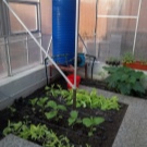 - от него се отклонява маркуч, опънат по леглата на оранжерията;