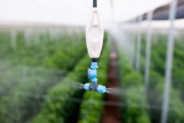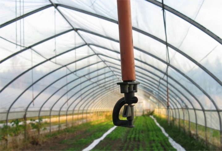 Както и в предишния случай, тук няма да има струи.. Течността се подава на чисти капки. Всяка пръскачка, с всички разлики между отделните модели, е в състояние да утоли жаждата на растенията на голяма площ. Но тук заслугите свършват. Но има заплаха, че оранжерията ще стане прекалено влажна и натрупването на течност върху листата може да провокира изгарянето й.