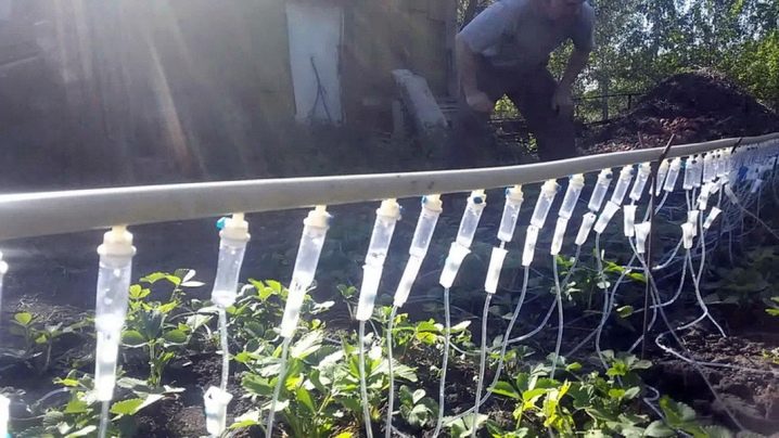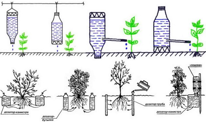 Ето защо собствениците на оранжерии често се опитват да опростят живота си, като използват обикновена пластмасова бутилка.. В него се правят дупки и този контейнер се заравя до необходимите растения. По отношение на разходите тази опция е най -печелившата и ако има достатъчно ненужни бутилки, няма да са необходими допълнителни разходи. Но тук тънкостта е, че тази опция все още е по-скоро полуавтоматична, защото трябва да актуализирате течността в резервоарите на всеки няколко дни. Ако времето е сухо и горещо, понякога трябва да се прави по -често..