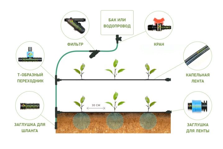 Много важен момент при производството на такива ленти е, че шевът е умишлено направен с малки дупки. Просто те ви позволяват да нанасяте течност директно върху леглата. Препоръчва се лентата да се постави с капкови канали нагоре. Колкото по -близо е разположението до права линия, толкова по -практична и надеждна ще бъде цялата система. Въз основа на опит в голямо разнообразие от условия, капковите ленти са много по -добри от тръбите, особено ако поливната площ е голяма.