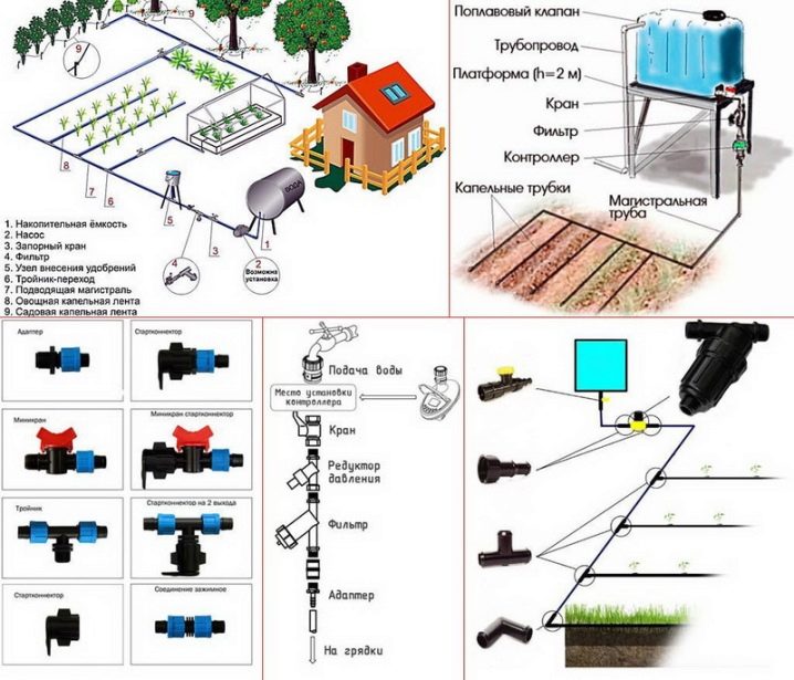 Според общоприетата технология, комплектът от монтирани части включва също филтри и конектори за стартер.. Броят на съединителите и техните видове могат да варират значително. За да оборудвате системата до края правилно, накрая трябва да вземете помпа с необходимите параметри. Строго погледнато, няма специални помпени устройства за тази цел, така че фермерите използват всяко оборудване, способно да изпомпва студена течност в необходимия обем. Основното значение при избора са интензитетът на преминаване на водата и височината, до която тя ще се изпомпва.