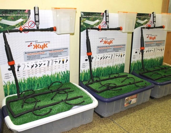 Има и основни комплекти за поддръжка на легла, маркучи за надземни и подземни магистрали. Системите за микрокапково напояване са напълно готови за употреба, ако са инсталирани правилно. Сериозна конкуренция за тази компания може да бъде апарат “Водомерка”. Комплектите от тази серия са подходящи за работа заедно с водоснабдяване и без него. Производителите декларират, че техните продукти са способни да работят при изключително ниски напори.