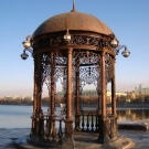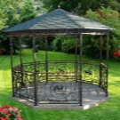 - Ротондата е метална конструкция, която се поставя в близост до водоеми или всеки източник на вода. В този случай основата има вид на купчина, покривът е огънат като купол и се създават стъпала за влизане в беседката.