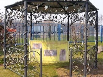 Имайки частна къща или територия, където е удобно и красиво да подредите пейки с малка маса, най -доброто решение е да изградите цял комплекс беседка. Седенето без покрив над главата не е много удобно, особено през лятото, когато навън е много горещо и просто трябва да се скриете от слънцето. Беседката може да бъде изработена от най -различни материали, но най -красивата е метална, с която можете да изковате всякакъв модел и форма. Такава беседка се превръща в истинско произведение на изкуството..