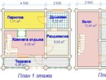 В зависимост от това колко хора ще посетят банята, трябва да определите нейния размер. За семейство от 4-5 души ще бъде достатъчна малка двуетажна сграда.