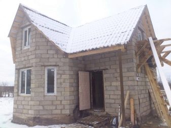 Ъглова вана 6х6 м от пенобетон може да изглежда като истински замък.