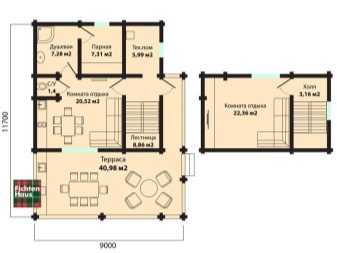 За случайна почивка на гости на компанията или ако трябва да живеете в къщата повече от ден, трябва да планирате изграждането на по -просторна сауна с няколко стаи на втория етаж, където можете да оборудвате стая за отдих, спалня, фитнес зала с уреди за тренировки, билярдна маса или маса за тенис..