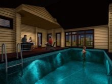 Изпълнението на плана 2 в 1 (сауна + стая за релакс) дава възможност да се освободи място в крайградската зона за басейна. В такъв случай басейнът може да бъде разположен както на открито, така и под навес. Възможно е също така да се инсталира басейн в остъклена пристройка или на тераса.