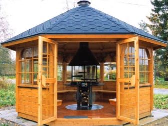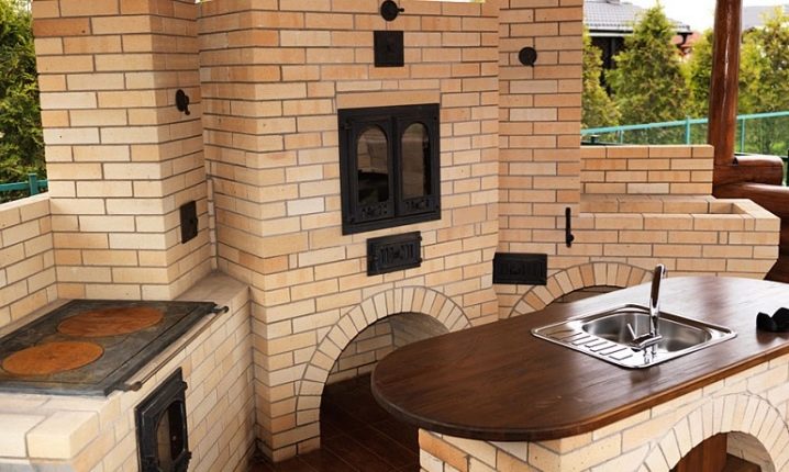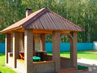Отделен вид лятна беседка – тухлен комплекс с печка. Този дизайн ще ви позволи не само да се насладите на красотата на природата, но и да създадете кулинарни шедьоври от месо, риба и зеленчуци. Пилафът, приготвен на открит огън, ще се превърне в изящно лакомство за шумна компания, а сладките сладкиши ще бъдат деликатес за най -малките гости..