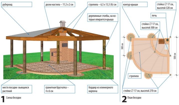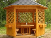Размерът на беседката зависи от броя на хората, планиращи отдих на открито. За един човек е необходимо да се осигури 2 m2 площ, а оптималната височина не трябва да бъде по -малка от 2 m.