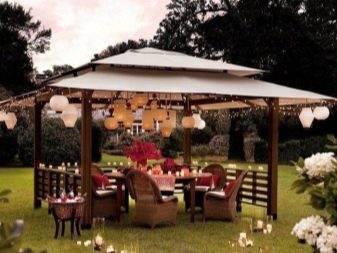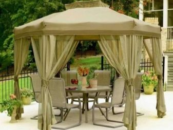 Палатка-беседка е мобилна зона за отдих за инсталиране навсякъде, в зависимост от желанието на собственика. Ефирен плат върху подпорите на конструкцията ще създаде усещане за лекота и елегантност, ще предпази от слънчева светлина и насекоми.