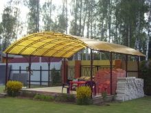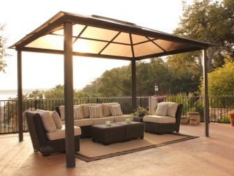 Евтин и модерен тип материал – поликарбонат. Използва се за украса на стените и покрива на беседната конструкция. Поликарбонатът ще осигури надеждна защита от ярка слънчева светлина и студен летен дъжд.