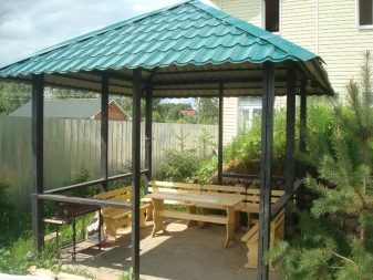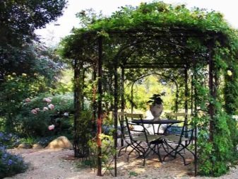 Металните беседки са хармонична комбинация от лекота и ефирност със здравина и надеждност. Тези конструкции имат най -дълъг експлоатационен живот и максимална устойчивост на атмосферни валежи. Конструкцията, обработена с разтвори срещу корозия и боядисана със специални бои, ще радва собствениците повече от десетина години.