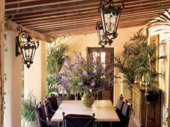 - Италиански – строителство с изящни подпори и дървени интериорни предмети;