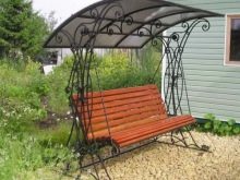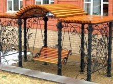 Люлка за беседка, изработена от кован метал, е модерен и модерен атрибут. Оригиналните дизайни по стените и гърбовете постоянно ще привличат вниманието на гостите.