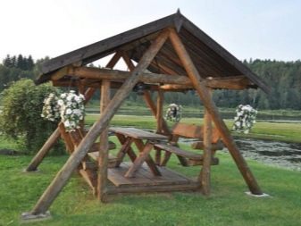 Ако основната ви сграда е построена от дърво, тогава такава беседка ще се впише добре в интериора. Особено ако покривът е направен от същия материал. Освен това дървото е здрава и издръжлива суровина. Металните и дървените конструкции са най -популярни.