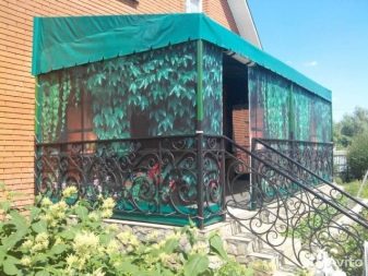 Ефективно и модерно решение ще бъде придобиването на меки прозорци с цветни кантове.. Те могат да бъдат от почти всеки нюанс. Също така, полупрозрачните платна и материали с различни цветове са не по -малко популярни. Мекият прозорец в идеалния случай ще бъде в хармония с цвета, съчетан със сградата, това ще спомогне за поддържане на хармония в дизайна на екстериора на фасадата. В този случай дори метална рамка може да бъде подходяща..