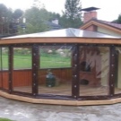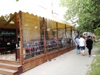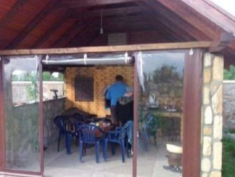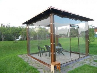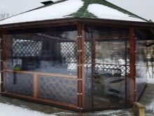 Инсталирането на този материал е много популярно не само сред собствениците на беседки, но и сред тези, които притежават кафенета или ресторанти. Търсенето на този материал е заслужено, тъй като е просто невъзможно да се намери достоен аналог за тях. Този материал съчетава всичко най -добро: приятна цена, високо ниво на качество и красив външен вид. Благодарение на меките прозорци, отделна сграда може да бъде направена както индивидуална, така и комбинирана с други конструкции.