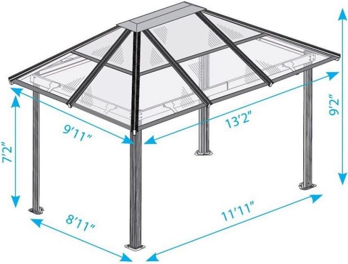 Необходимостта от предварително създаване на чертеж вече бе спомената мимоходом, обаче трябва да се изясни, че тя трябва да бъде подробна, тоест да посочи абсолютно всички детайли и да опише техните размери. По -добре е беседката да бъде показана от различни страни и в различни секции. Ако говорим за нещо по -сложно от примитивен балдахин, трябва да се изготви отделен чертеж за комуникации. Подобни планове се правят дори за вентилационната система и покрива..