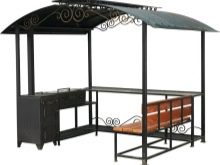 Трябва да се отбележи, че металните беседки в по -голямата част от случаите имат форма, близка до кръгла – може да бъде шестоъгълник или осмоъгълник, но много рядко – банален квадрат. Металът принадлежи към огнеупорни материали, затова е важно тук да се монтира мангал, който е логично да се постави в средата, поставяйки гостите в кръг – това определя формата.