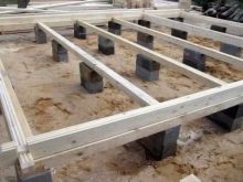 Ако за основа е избрана колонна или дори ивична основа, те трябва да бъдат изградени според отделна инструкция. Ако собственикът реши да направи без такава солидна конструкция, е необходимо да се предвиди опорните стълбове да влизат дълбоко в почвата, поне на метър – това ще гарантира висока стабилност на конструкцията, а също така ще направи възможно защитата на структура от движения на земята по време на замръзване. В изкопаните дупки се изсипва пясък и чакъл, след инсталиране на стълба се изсипва и малка яма с бетон.