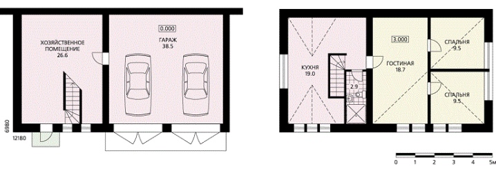 Това оформление е идеално за малка крайградска зона, където няма желание или възможност за изграждане на голяма жилищна сграда. Всичко необходимо за живота е удобно комбинирано с гараж и не заема много място.