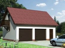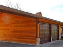 - Гараж за две коли 7×13 метра с жилищен етаж и помощен блок. За тази сграда е използвана монолитна основа и стени от блокове от пяна с дебелина 2 сантиметра. Освен това стените са изолирани. Покривът е направен от фронтон с ъгъл на наклон 25 градуса. Като покрив се използва метална керемида. Стените са завършени с имитация на дървен материал, което ги прави по -удобни. Портите в този гараж са направени от автоматични навивки. В този проект гаражът заема по -малка площ от жилищния етаж с домакинска единица. Той е проектиран компактно с удобно настаняване. Няма вход към домакинството директно от гаража. Отвън обаче тя е покрита с козирка, окачена над първия етаж, където всъщност се намира домакинството. Жилищният етаж е втори.