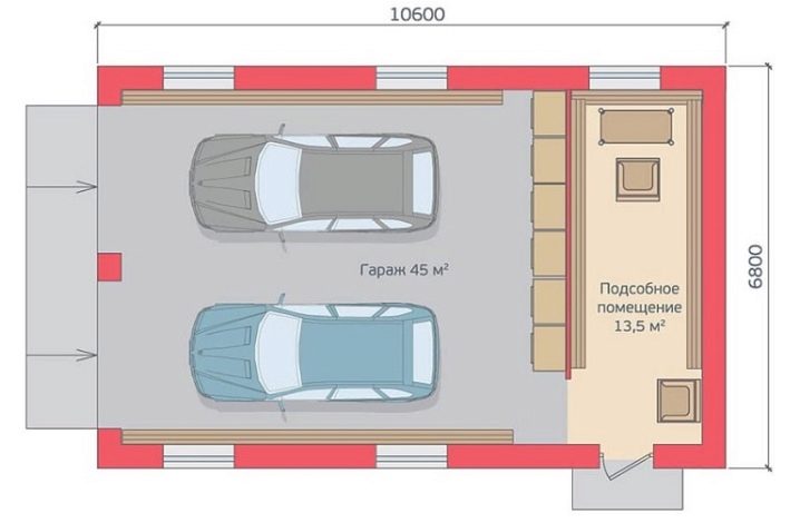 Когато планирате гаражен проект, си струва да помислите какво друго ще се направи с него, например работилница, таванско помещение. В този случай размерите трябва да се увеличат значително. Но също така ще бъде полезно да се вземе предвид необходимостта от място за съхранение на резервни части и инструменти.. Оптималната площ на гараж за две коли е 50 м2..