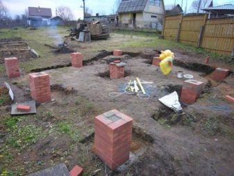 - Когато разтворът е фиксиран, е необходимо да се оформят колони от тухли с височина най -малко 30 см. Тухлите трябва да бъдат фиксирани с циментова замазка.