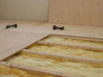 След полагане на основата се инсталират изоставания. Те трябва да бъдат положени на ръба, като се прави стъпка от 0,5-1 м. Те се фиксират с помощта на самонарезни винтове и метални ъгли. Подовите дъски трябва да се поставят върху завършената основа на рамката, като се закрепят с пирони или самонарезни винтове.