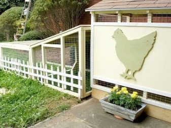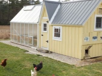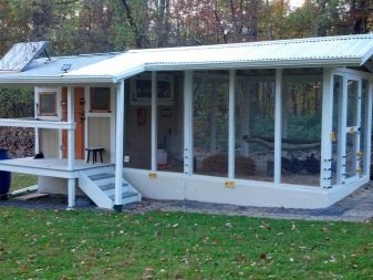 Вътре в самия кошара се препоръчва инсталирайте отделна врата, която ще води директно към вътрешния двор за разходка. Освен това над пешеходната зона обикновено се монтира здрав навес, който добре предпазва пернатото население от нападенията на хищни животни. Препоръчително е да инсталирате допълнителни костури на територията на двора.