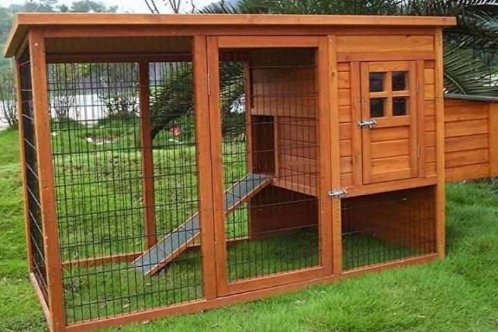 За да предпазите птиците си от всяка опасност по време на разходка или да им попречите да излетят от волиера, издърпайте найлонова мрежа под формата на покрив. Между другото, за да се спести място, кокошарниците често се правят двуетажни: най-отгоре имат кацалки за пренощуване, гнезда за снасяне на яйца, а на дъното поставят клетка на открито за ходене.