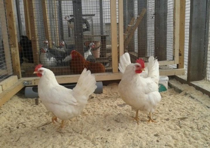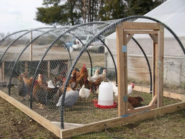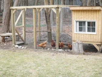 Част от кокошарника трябва да бъде волиера за ходещи птици. Пешеходната зона обикновено е 2 или дори 3 пъти по -голяма от птицефермата. Тук, колкото по -голяма е площта, толкова по -добре. Що се отнася до увеличаване на плътността на отглеждане над нормите, опитни птицевъди не препоръчват да се прави това: при такива тесни условия птицата ще се развива слабо, слоевете ще намалят снасянето на яйца и риска от заразяване на добитъка с различни заболявания е твърде страхотно.