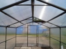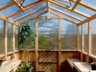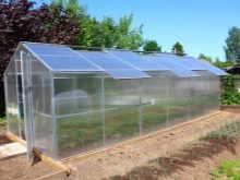 По -добре е да изберете разумно оранжерии, които могат да се оборудват с автоматично напояване и термично задвижване. Успешните опции включват конструкции, направени на пълен човешки ръст или с отварящ се връх: те имат много въздух, лесно можете да се обърнете и да изправите гърба си, подходящи са както за къси, така и за високи култури. Ъгълът на наклона на покрива трябва да бъде най -малко 30 см, което ще позволи на снега лесно да се плъзне.