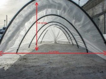 За такава оранжерия трябва само да изчислите дължината, ширината и височината, както и да определите броя на дъгите. Когато изчислявате ширината на оранжерията, трябва да вземете предвид, че тя трябва да бъде с около 30 см по -широка от градината.