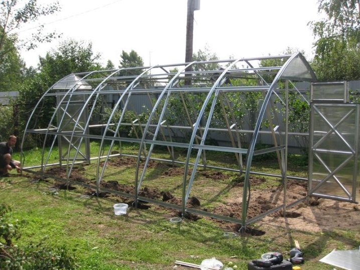 - Плоскостите на крайната част са монтирани с универсални съединители, от които има само около 8 броя. Те са необходими за последващото сглобяване на тялото на конструкцията. Пригответе се да обшиете крайните парчета с поликарбонатни листове. За начало направете връзките на листовете със скелета в чашите, в които след това ще бъдат поставени крепежни елементи.
