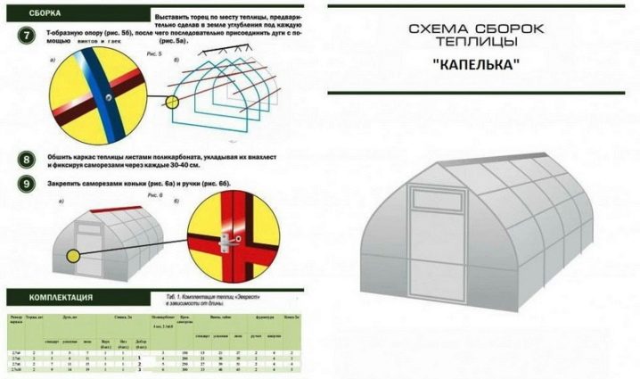 Помислете за подробна схема на сглобяване на оранжерията на капките.