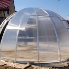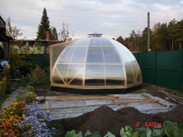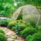 - Кръгъл – такива опции са особено търсени за отглеждане на топлолюбиви растения. Външно структурата може да изглежда като ескимоско иглу. Освен това при собственото производство често се използва дизайн на чадър, при който куполът има формата на полукълбо, състоящо се от отделни „венчелистчета“.