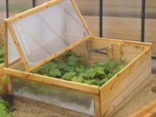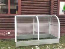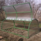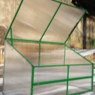 Представената опция за дизайн се характеризира с максимална гъвкавост. Цената на готово решение, по отношение на дългосрочната употреба, изглежда доста привлекателна. Използваните материали правят оборудването за отглеждане на разсад отлична възможност за целогодишна работа. Оранжерията се отваря от двете страни. Може да се използва за отглеждане на повечето култури. Струва си да се има предвид само ограничението във височина – не повече от 85 см за едно растение. Бюджетната цена на структурата изглежда наистина привлекателна на този фон..