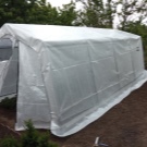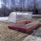 - Поликарбонат – оригинално решение, което ви позволява да превърнете временна конструкция в почти неподвижно решение. Листовият материал се отличава с отлична гъвкавост, пропускане на светлина и отлични топлоизолационни свойства. Освен това оранжериите от поликарбонат са леки и лесни за инсталиране. Освен това си струва да се има предвид, че при наличието на допълнително отопление, такава оранжерия може да се експлоатира целогодишно, без допълнителни усилия и разходи, предоставяйки възможност за успешно отглеждане на зеленчуци или ранна подготовка на разсад за прехвърляне в открита земя..
