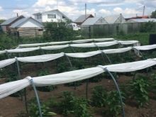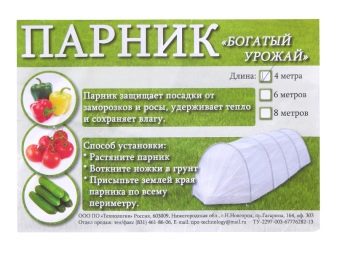 Удобството на оранжерията в употреба предоставя възможност за лесно изместване на агротекстила по секции при плевене или поливане. Платът е проектиран с поле, позволява ви плътно притискане на ръба към земята. В допълнение, крайният продукт е в състояние да осигури най -високо ниво на защита срещу вредното въздействие на ултравиолетовите лъчи. Продуктът се монтира директно в земята, не изисква инсталиране на рамка, създава по -добри условия за получаване на високи добиви (производителят обещава увеличение с до 50% в сравнение с открития терен).