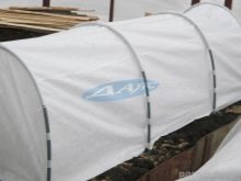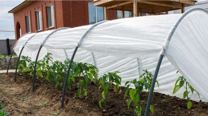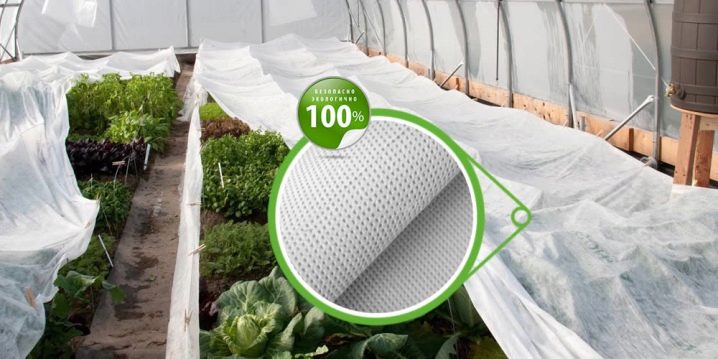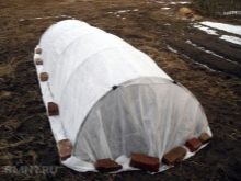 - Покривен материал или спанбонд. Нетъканите полимерни тъкани дават възможност за формиране на безупречен микроклимат в оранжерията. С тяхна помощ можете да покриете леглата на всяка област, да осигурите високо ниво на пропускане на светлина и естествена вентилация на пространството. Поливането в този случай може да се извърши и върху материала. Струва си да се обърне внимание на факта, че в този случай не е нужно да се притеснявате за защитата на растенията от въздействието на вредители или птици (по време на реколтата). За разлика от филма, това решение предоставя възможности за непрекъсната работа в продължение на няколко сезона..