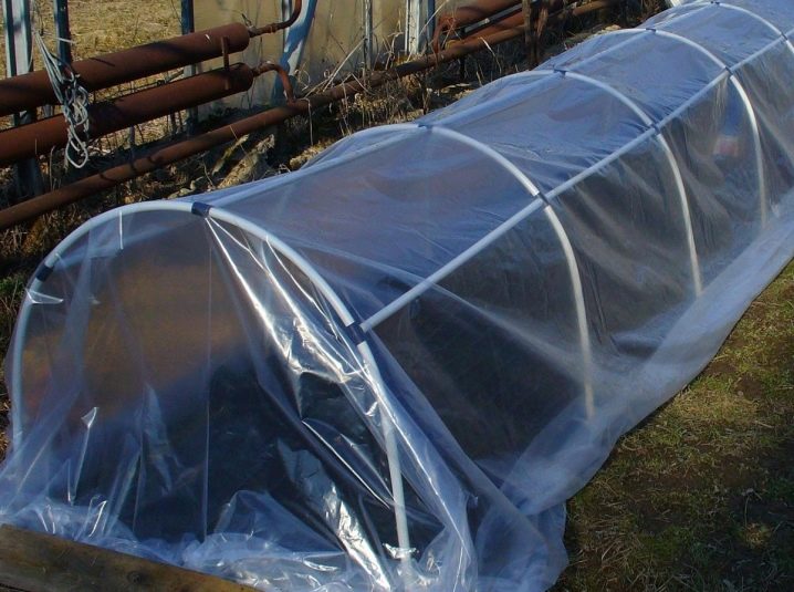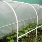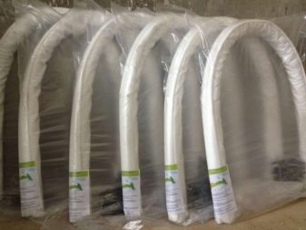 При монтажа дъгите от полимерни материали се монтират директно в основата на рамката. Не са необходими винтови връзки – просто свържете елементите заедно. Пластмасовата основа има висока корозионна устойчивост, не се страхува от контакт с химически агресивни вещества. Достъпната цена на този модел му позволява да бъде привлекателен за летни жители и градинари, които имат лични спомагателни парцели..