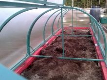 - допълнителни дъгообразни дъгови конструкции, монтирани върху рафтовете за закрепване на втория слой от филма;