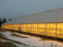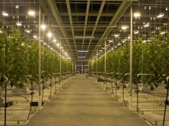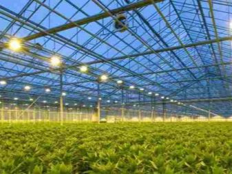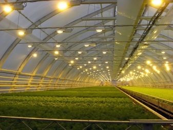 Що се отнася до промишлени съоръжения, лампите с нажежаема жичка никога не се използват в такива оранжерии.. Светодиодите също не са подходящи за тях поради високата цена на общото количество. За такива сгради се използват натриеви лампи, които по отношение на светлинния спектър са възможно най -близо до слънчевата светлина..